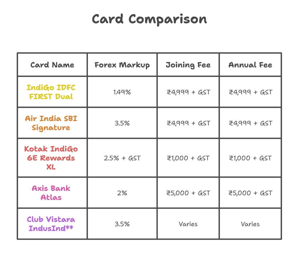 ** Club Vistara Card is shown for comparison purposes only.